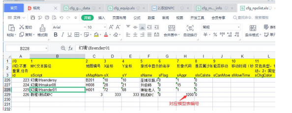 3.在 MirServerMir200EnvirData 文件夹里找到 cfg_npclist.xls 表格文件 添加好 NPC 后把 ID 排列一下,防止出错,形象代码对应 cfg_model_info.xls