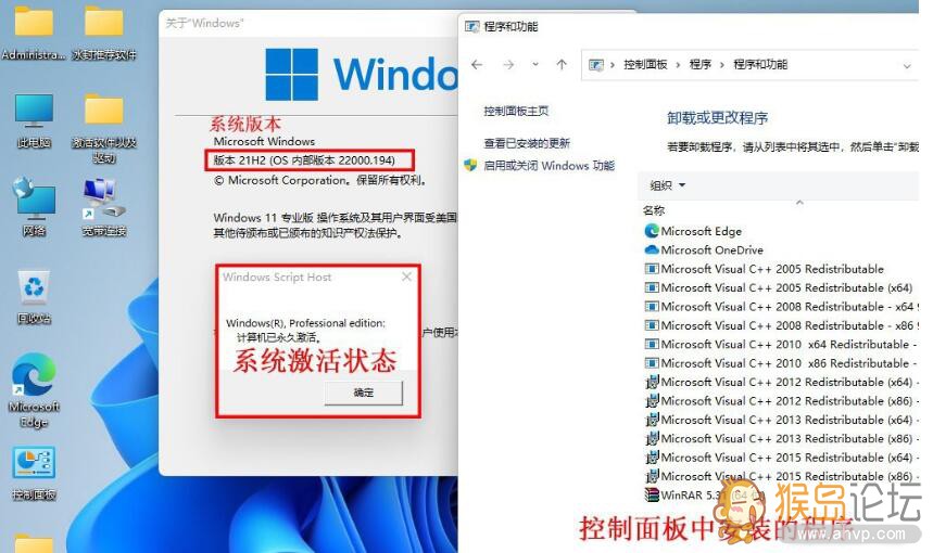 安装后唯一标准的桌面截图以及系统激活信息